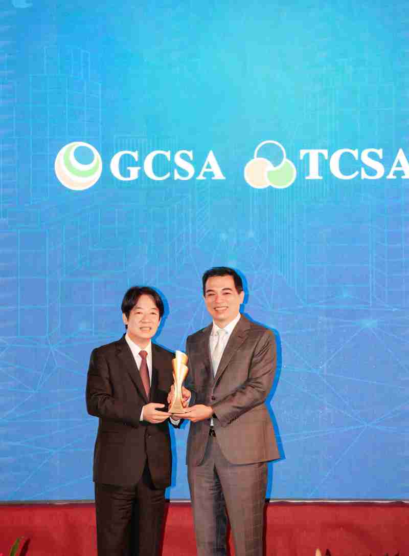 达全方位永续表现获全球永续奖及台湾永续奖肯定,,,由副总统赖清德颁奖 (左),,,,彩霸王总经理柯富仁 (右) 代表领奖