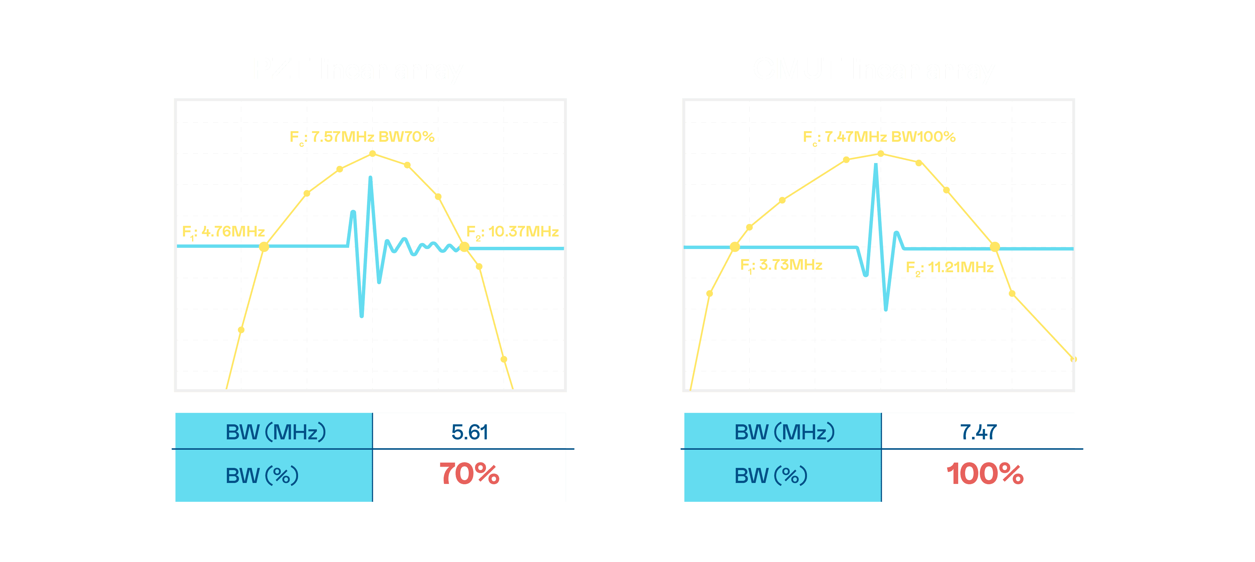CMUT 技术是一种用电容式微机电元件来产生超音波讯号的技术。。。。与传统 PZT 压电式技术相比,,,CMUT 频宽增加 30%,,,更宽频的超音波讯号让影像解析度大幅提升,,,,是实现高影像品质医疗超音波扫描、、、促进精准医疗发展的关键技术。。